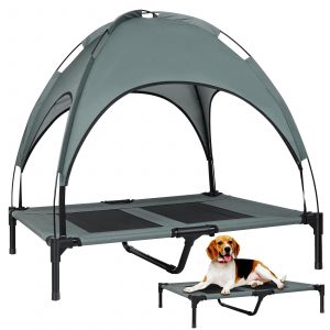 Petbank Elevated Dog Bed, Outdoor w/Canopy, Raised Dog Cot with Anti-Slip Feet, Breathable Mesh for Indoor/Outdoor Use, Portable Cooling Dog Bed