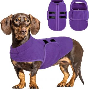 Queenmore Small Dog Sweater – Soft Fleece Pullover Vest with Leash Hole, Warm Winter Jacket for Small Dogs, Cats (Lavender, S)