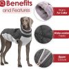 The back zipper allows quick, hassle-free dressing. A protective flap prevents fur and skin from getting caught.