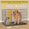 DUMOS Dog Crate with Double Doors – Enhanced Metal Foldable Pet Cage with Divider Panel; Removable Tray, Portable Kennel for Outdoor/Indoor with Handle