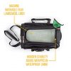 - Adjustable shoulder strap converts to a padded pull handle