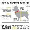 - Do NOT select the carrier size based on weight only. Choose the carrier size based on your pet’s measurements first, then make sure not to exceed the maximum weight limit.